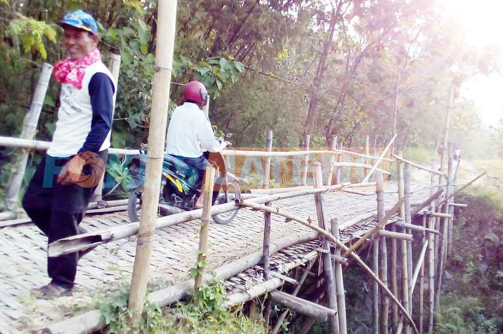 FOKUS JATENG – SRAGEN – Jembatan Desa Trombol, Kecamatan Tanon, Sragen, kondisinya sangat memprihatinkan. Pasalnya, sudah bertahun-tahun ambrol tidak kunjung ditangani. Warga pun nekat membangun jembatan sementara dari bambu yang dikumpulkan dari beberapa kepala keluarga (KK).