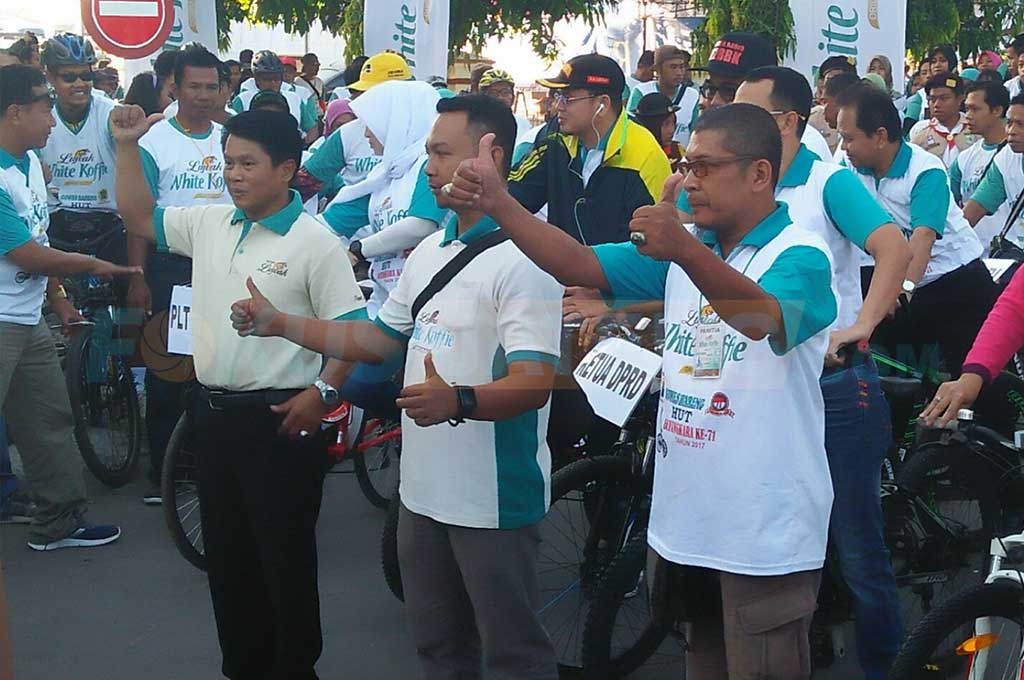 FOKUS JATENG – KLATEN – Ribuan peserta sepeda santai (gowes bareng) dalam rangka HUT ke-71 Bhayangkara mulai diberangkatkan dari halaman Polres Klaten, Minggu 15 Juli 2017 pukul 06.00.