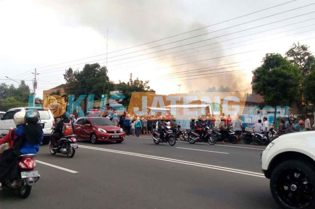 Asap mengepul dari kejauhan akibat wedangan Gasebo di Ngablak, Papahan, Tasikmadu, Karanganyar, terbakar Jumat 21 Juli 2017. | Suroto