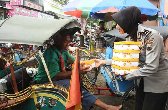 Seorang Abang becak asal Gaum, Sumidi mengaku terkesan dengan pemberian nasi kotak Sat Binmas. Meski sudah menyantap sarapan pagi, namun ia tak menolak pemberian dari Polres Karanganyar itu. ”Tiap hari sarapan. Nasi kotak ini buat nanti makan siang. Lumayan bisa ngirit,” katanya.