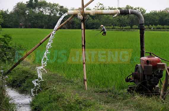 Kemarau dan keringnya saluran irigasi menjadi masalah klasik petani di Kabupaten Sragen. Mau tak mau mereka harus menyedot air tanah dengan mesin pompa untuk mengairi sawah yang mereka tanam jagung, kacang, padi, dan lainnya.