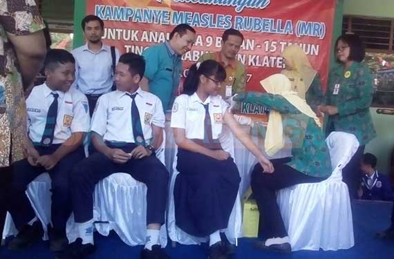 Pelaksana tugas (Plt) Kepala Dinas Kesehatan (Dinkes) Klaten, Cahyana Widada mengatakan, sasaran kampanye MR di Klaten sebanyak 66.558 anak, sasaran usia PAUD dan Taman Kanak-Kanak 41.123 anak, usia sekolah 7 hingga 15 tahun sebanyak 165.856 anak dan anak usia 7 hingga 15 tahun (tidak sekolah) sebanyak 436 anak. Pelaksanaannya dilakukan di 34 Puskesmas, 2.450 sekolah dan 2.108 Posyandu yang tersebar di Klaten.