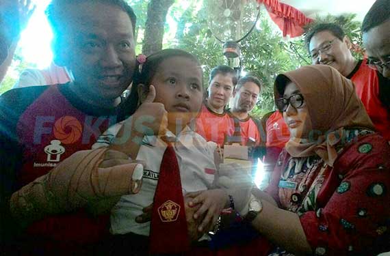 Gerakan nasional imunisasi MR yang berlangsung di SDN Karang Pelem, Kecamatan Kedawung, Sragen, Selasa 1 Agustus 2017. | Huriyanto