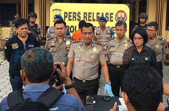 Kapolres Sragen AKBP Arif Budiman gelar perkara perampokan yang korbannya dibuang di alas karet Kedawung. Gelar perkara berlangsung di Mapolres Sragen Selasa sore 8 Agustus 2017. | Huriyanto