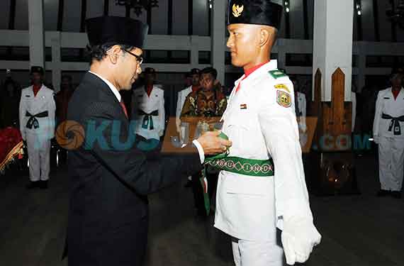 Wabup Boyolali M. Said Hidayat melantik paskibraka Boyolali 2017 di Pendapa Ageng Pemkab Boyolali, Senin malam 14 Agustus 2017. | Istimewa