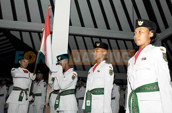 FOKUS JATENG – BOYOLALI – Setelah menjalani gemblengan latihan intensif, karantina Pasukan Pengibar Bendera Pusaka (Paskibraka) Boyolali tahun 2017 siap mengemban tugas. Mereka secara resmi dikukuhkan oleh Wakil Bupati (Wabup) Boyolali M. Said Hidayat pada Senin malam 14 Agustus 2017 di Pendapa Gede Kompleks Perkantoran Pemkab Boyolali.