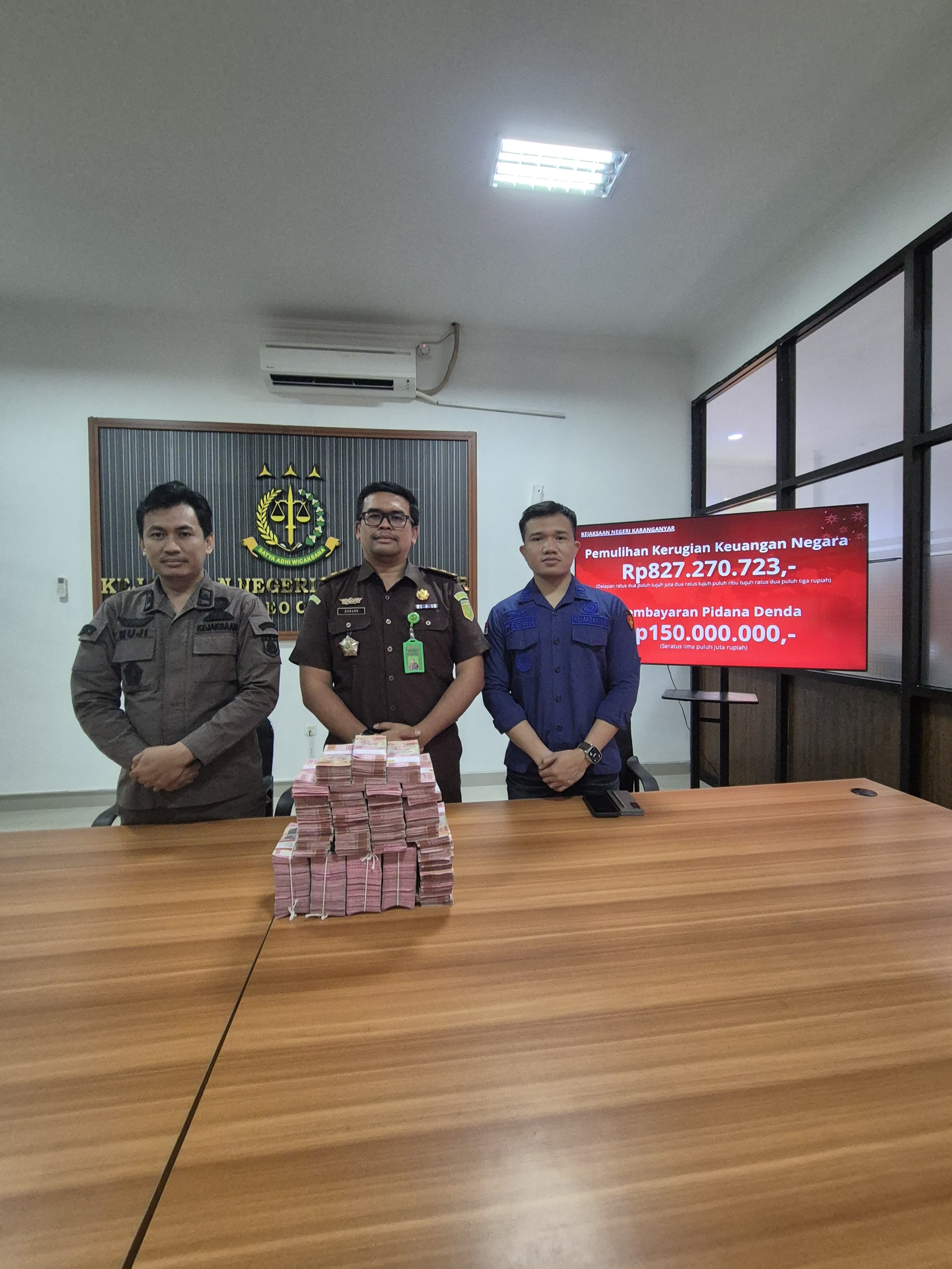 Kejari Karanganyar Eksekusi Uang Pengganti dan Denda Kasus Korupsi Alkes, Hampir Rp1 Miliar Kembali ke Kas Negara