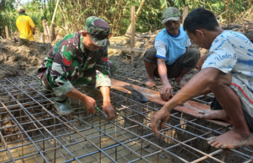 TNI dan Warga Cerme Juwangi kompak mulai merangkai Besi Jembatan Garuda