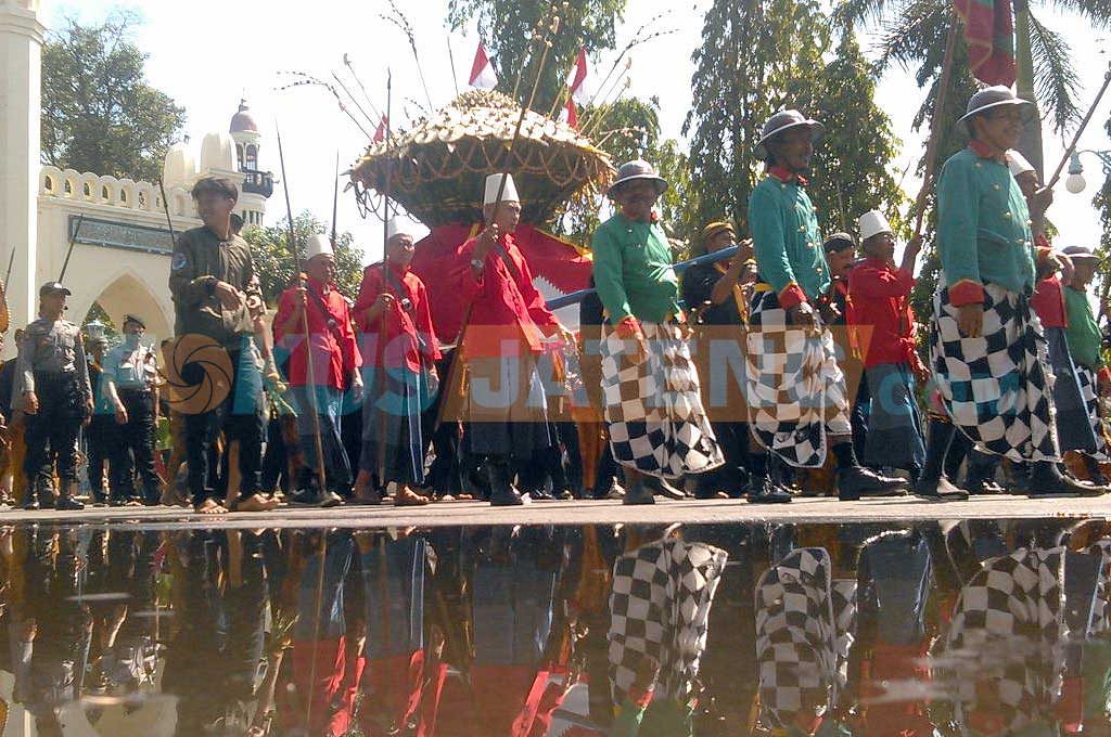 FOKUS JATENG-SOLO – Momen Idul Fitri tidak terlepas dari grebeg syawal yang digelar Kraton Solo. Tradisi yang sudah berjalan puluhan tahun ini tetap masih menjadi daya tarik warga Solo dan sekitarnya. Hal ini terbukti ketika kirap gunungan dari kraton menuju Masjid Agung Solo dikerubuti ratusan bahkan ribuan warga dari berbagai daerah.