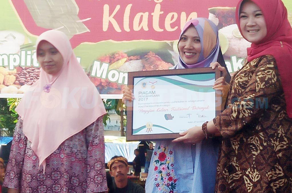 FOKUS JATENG-KLATEN – Sajian kuliner pedagang yang tergabung dalam Koperasi Manunggal Klaten tercatat di Museum Rekor Indonesia (MURI). Gelaran tersebut dikemas dalam festival kuliner tradisional Klaten dihelat di Alun-Alun Klaten, Selasa 27 Juni 2017.