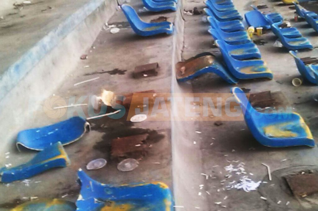 FOKUS SPORT-SOLO– Kursi tribun barat VIP sayap Stadion Manahan, Solo, rusak, pasca pertandingan Persis Solo melawan PSIS Semarang, Kamis (6/7) sore. Tribun tersebut di tempati oleh sekitar 3 ribu suporter PSIS yang mendukung perjuangan tim asuhan Subangkit.