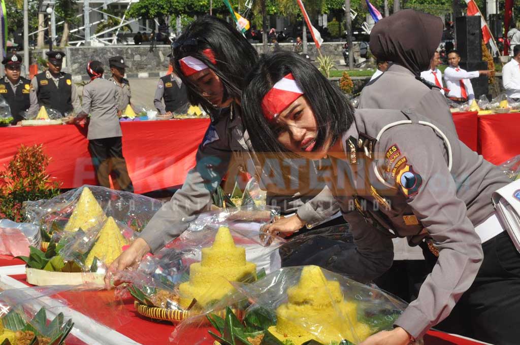 Mulai pemotongan 71 nasi tumpeng hingga tari modern yang melibatkan 71 anggota polisi selama 7,1 menit. Meski dijaga ketat, warga sekitar dipersilakan menyaksikan prosesi perayaan HUT Bhayangkara ke-71.
