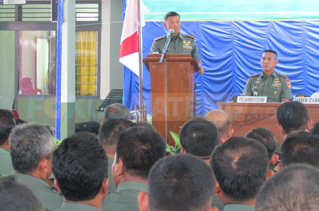 FOKUS JATENG – SRAGEN – Komandan Korem (Danrem) 074/Warastratama, Kolonel Inf Widi Prasetijono melakukan roadshow ke Seluruh Makodim di Eks Karisidenan Surakarta. Dalam kesempatan tersebut Danrem menegaskan akan mengawal semua Program Pemerintah termasuk Peraturan Pemerintah Pengganti UU (Perppu) 2/2017 menggantikan UU 17/2013 tentang Organisasi Kemasyarakatan.