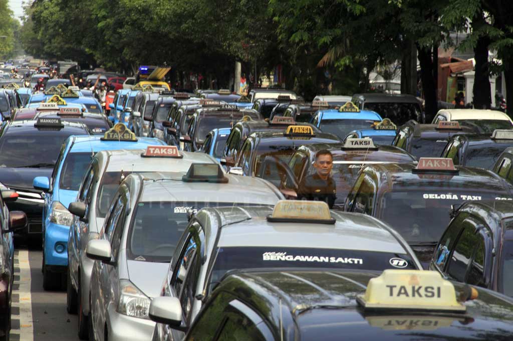 Aksi sopir taksi di kawasan Gladak, Jalan Slamet Riyadi, Solo, Selasa 11 Juli 2017. Ichwan Prihantoro