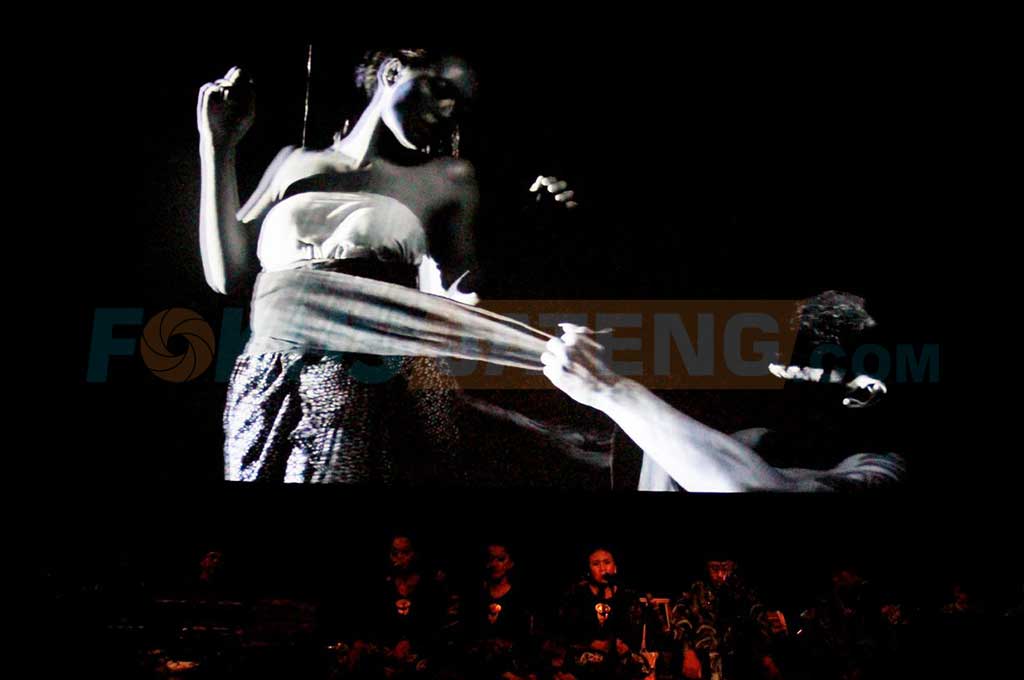 Salah satu adegan film bisu hitam putih setan Jawa, karya Garin Nugroho yang diputar di Teater Besar ISI Surakarta Sabtu 15 Juli 2017.