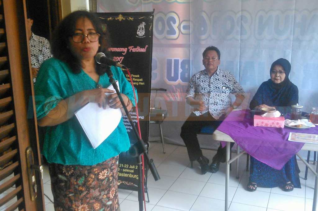 Kepala Dinas Kebudayaan Solo Sis Ismiati memberikan keterangan pers terkait event Solo Keroncong Festival 2017 yang rencananya akan digelar 21-22 Juli 2017 di Benteng Vastenberg. | Ichwan Prihantoro