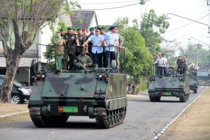 Tamu undangan dinaikkan kendaraan tastis menuju tempat upacara sertijab Komandan Brigrif 6 Kostrad Surakarta, Selasa 18 Juli 2017. Ichwan Prihantoro