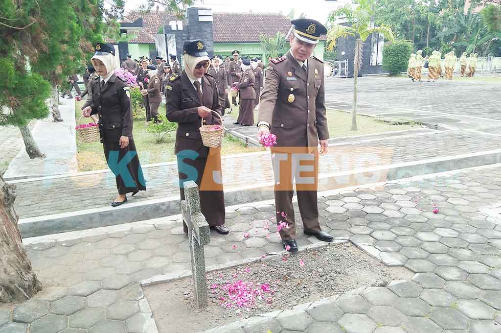 Kelapa Kejaksaan Negeri Klaten Zuhandi saat melakukan tabur bunga di makam Pahlawan Ratna Bantala Klaten, Sabtu 22 Juli 2017. | Joko Larsono