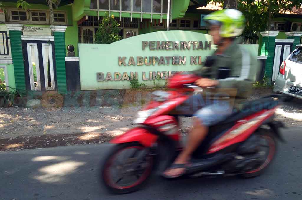 Pengendara sepeda motor melintasi di jalan depan kantor BLH Klaten, Senin 24 Juli 2017. | Joko Larsono