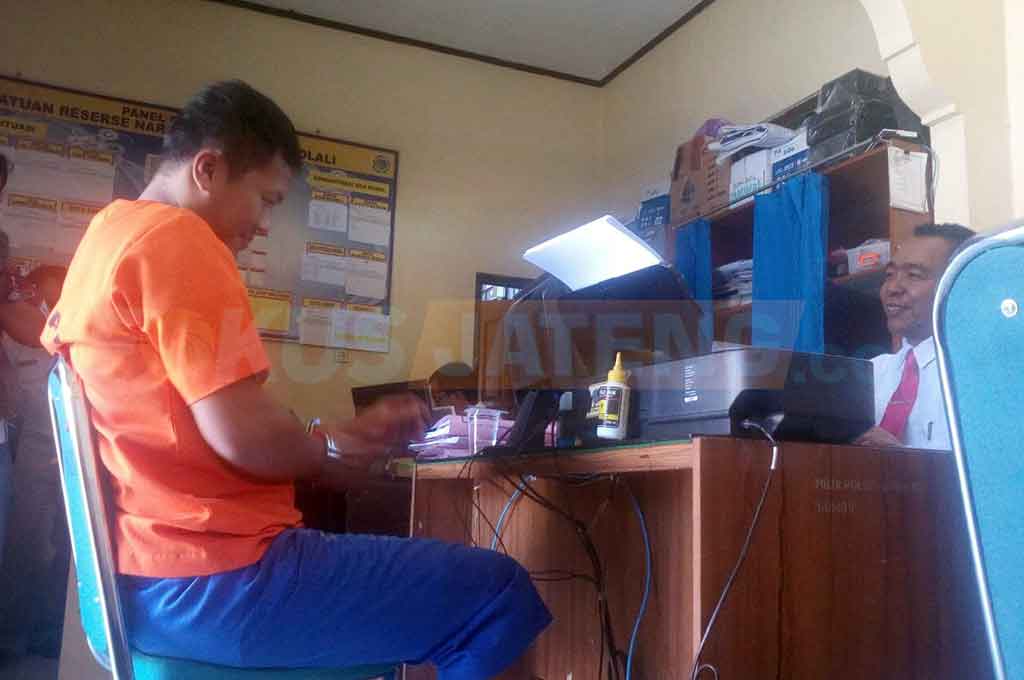 Efendi saat dimintai keterangan polisi di Mapolres Boyolali, Senin 24 Juli 2017. | Yulianto