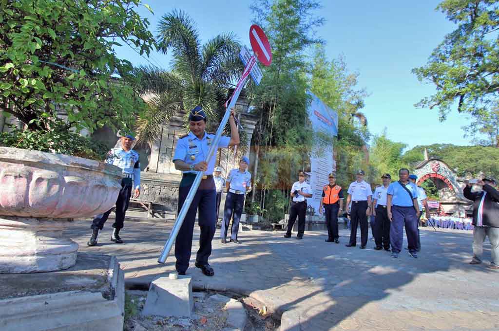 Apel bersama di Plaza Sriwedari sebelum giat bersih-bersih rambu lalu lintas, city walk, halte bus, dan memangkas ranting pohon yg menutupi rambu atau marka jalan di sepanjang Jalan Slamet Riyadi, Solo, Selasa 25 Juli 2017. | Ichwan Prihantoro