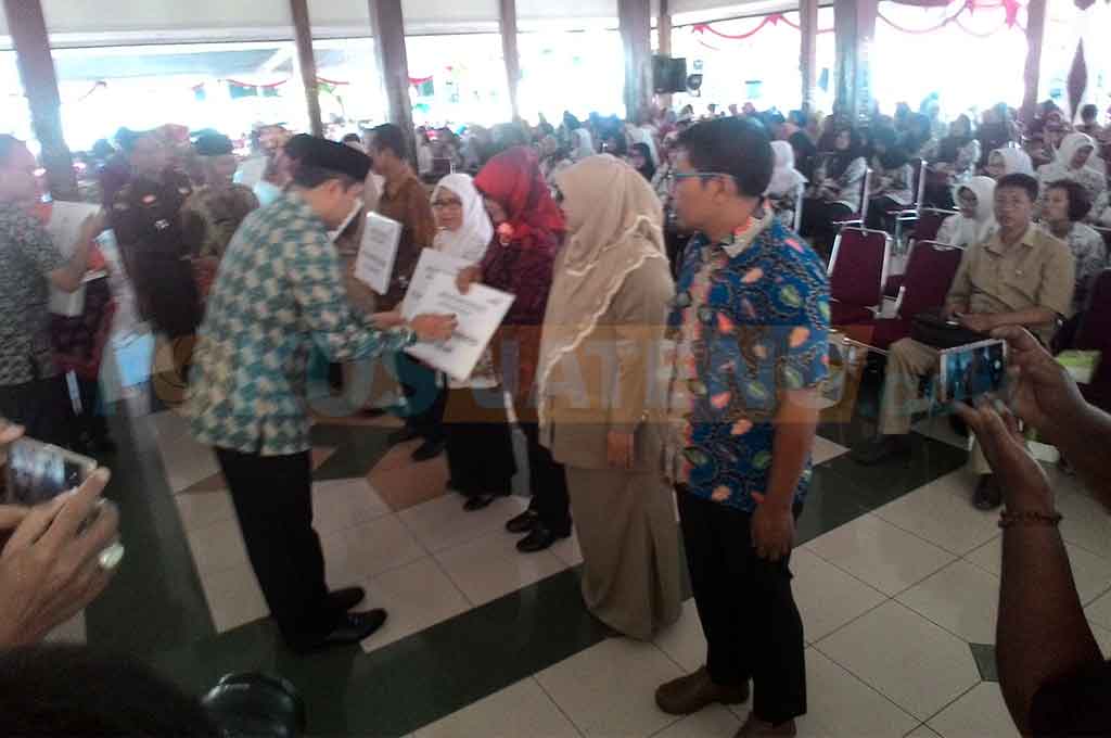 Penyerahan dana BOP PAUD di Pendapa Rumah Dinas Bupati Wonogiri, Selasa 25 Juli 2017. | Arianto