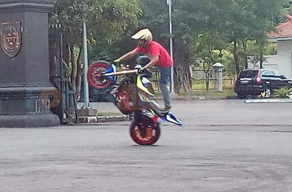 Anak-anak juga memanfaatkan Sor Ringin depan Rumdin Bupati Boyolali untuk latihan free style. | Yulianto