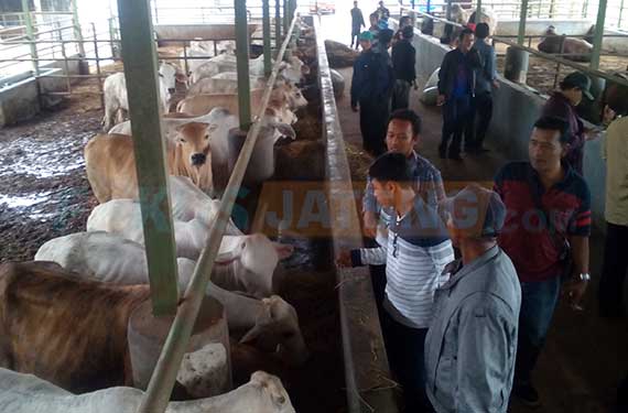 Para peserta magang diklat peternakan menengok langsung kandang sapi PT Widodo Makmur Perkasa di Desa Jambakan, Kecamatan Bayat, Kabupaten Klaten, Jawa Tengah, Kamis 27 Juli 2017. | Gunawan