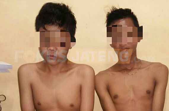 Dua pemuda ingusan ketangkap warga setelah tepergok mencuri rokok di Sragen, Rabu 2 Agustus 2017. | Huriyanto