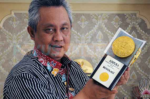 Bupati Boyolali Seno Samodro memperlihatkan piala Adipura, Kamis 3 Agustus 2017. | Yulianto