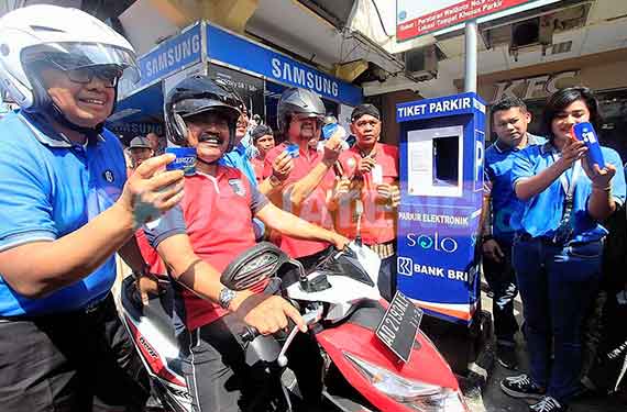 FOKUS JATENG – SOLO – Dengan menggandeng salah satu bank, akhirnya Pemkot Solo meresmikan keberadaan parkir elektronik di kawasan Jalan Gatot Subroto (Gatsu), Jumat 4 Agustus 2017. Peresmian tersebut dilakukan secara langsung oleh Wali Kota Solo F.X. Hadi Rudyatmo (Rudy) bersama Wawali Achmad Purnomo.