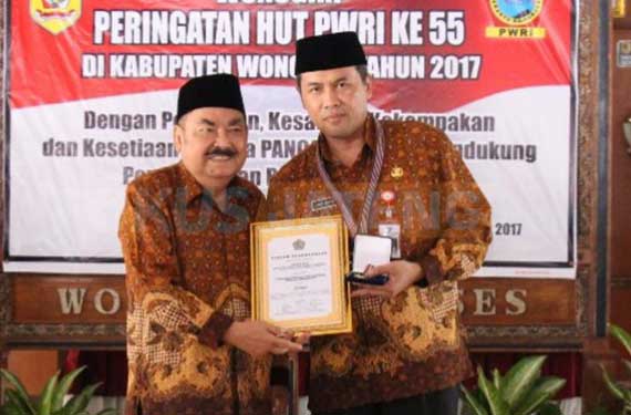 Pengurus Besar PWRI juga menganugerahkan piagam penghargaan dan tanda kehormatan Wredatama Nugraha kepada Bupati Wonogiri. Penghargaan diserahkan langsung oleh Haryono Suyono.