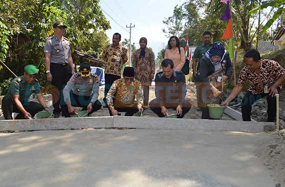 Wabup Boyolali M. Said Hidayat mengecor jalan lereng Merapi di wilayah Musuk, Boyolali, Selasa 8 Agustus 2017. | Yulianto