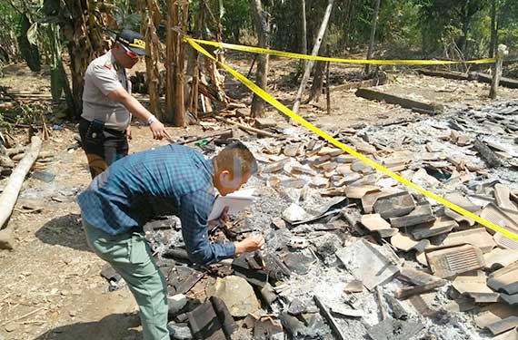 Warga dan polisi mengecek rumah yang terbakar di Gemolong, Sragen Rabu 9 Agustus 2017. | Huriyanto