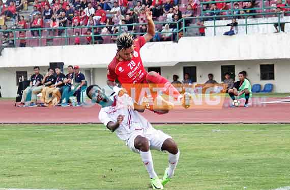 Persis Solo kembali merebut posisi puncak klasemen grup 4 Liga 2 dari PSIS Semarang, usai menaklukan tim Persipur Purwodadi, di Stadion Manahan, Solo, Minggu (13/8/2017) dengan skor telak 4-0. (FokusJateng/Ichwan Prihantoro)