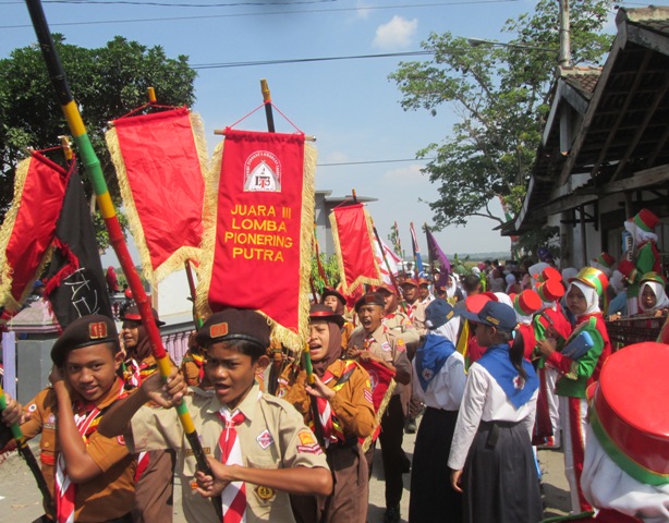 Para pelajar di Kecamatan Sumberlawang, Sragen meramaikan karnaval HUT Kemerdekaan Republik Indonesia ke-72, Jumat (18/8/2017) siang hingga menjelang sore. (FokusJateng/Huriyanto)