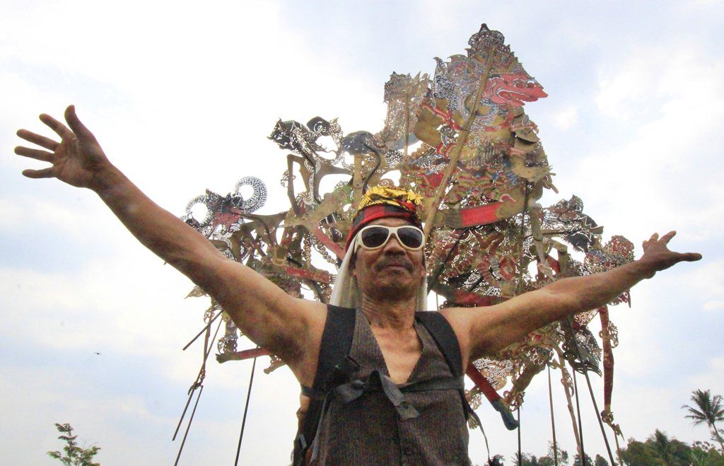 WAYANG ROCK — Wayang bersenjata gitar laiknya Satria Bergitar di Harjosari saat karnaval HUT Kemerdekaan RI. (FokusJateng/Ichwan Prihantoro)