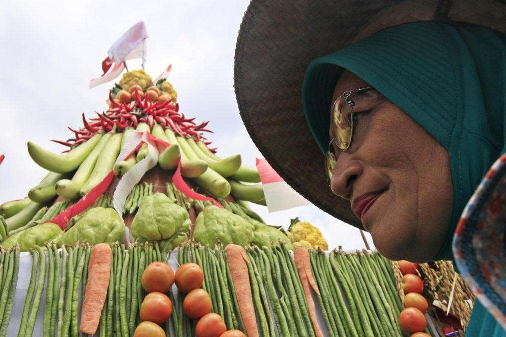 GUNUNGAN HASIL TANI– Penampakan Gunungan Hasil Tani warga Harjosari. (FokusJateng/Ichwan Prihantoro)