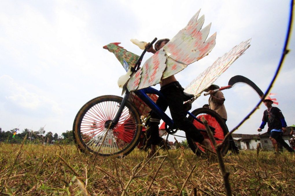 ELANG KOKOK PETOK — Warga menghias sepeda mirip elang tapi juga mirip ayam. (FokusJateng/Ichwan Prihantoro)