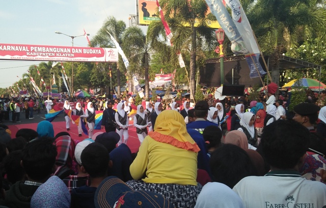 Karnaval budaya yang diselenggarakan pemerintah kabupaten (pemkab) Klaten tersebut dalam rangkaian HUT Klaten ke-213 dan HUT ke-72 RI itu disaksikan ribuan warga yang berdesak-desakan memenuhi jalan. Bahkan, pagar pembatas dari besi tidak bisa menghalangi warga yang ingin menyaksikan karnaval itu.