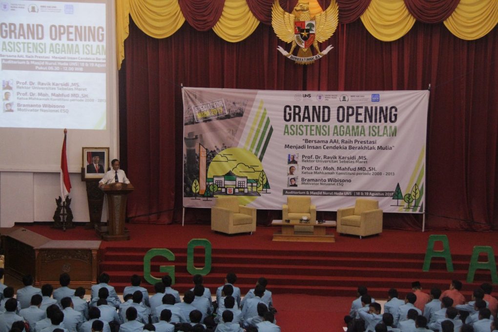 FOKUS JATENG – SOLO – Grand Opening Asistensi Agama Islam (GO AAI) diadakan sebagai rangkaian kegiatan penyambutan mahasiswa baru UNS. Program yang diadakan Biro AAI UNS ini merupakan tanda dimulainya program Asistensi Agama Islam bagi mahasiswa baru.