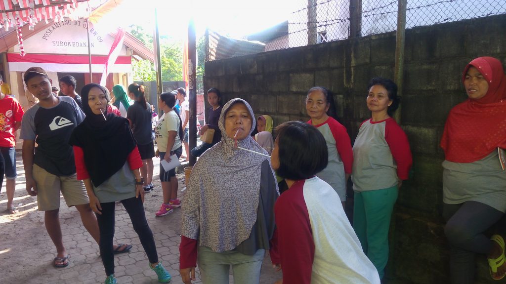 Gak perlu serius amat yach…peserta lomba menjaga kekompakan membawa gelang karet menggunakan sedotan di Surowedanan, Pulisen, Boyolali, Minggu 20 Agustus 2017. Istimewa