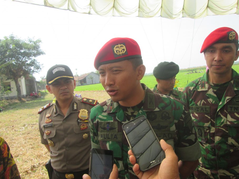 Wadan Kopassus Grup II Kandang Menjangan Letkol Inf Aulia Dwi Nasrullah saat diwawancarai wartawan di sela latihan terjun payung di Plupuh, Sragen, Rabu 23 Agustus 2017. (Fokus Jateng/Huriyanto)