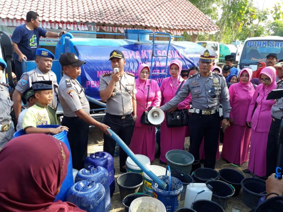 Polisi mengirim beberapa tangki air bersih di Kecamatan Mondokan. Kapolres Sragen AKBP Arif Budiman mendapat laporan bahwa ada kekeringan di sejumlah titik. ”Di sini kami sampaikan tidak hanya kamtibmas, namun juga membantu untuk kebutuhan air bersih,” ujarnya Rabu 23 Agustus 2017.