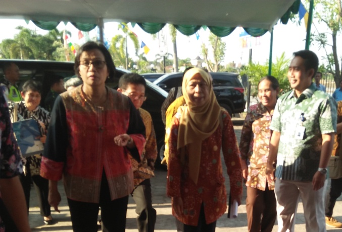 FOKUS JATENG-KLATEN-Menteri Keuangan Sri Mulyani Indrawati melakukan kunjungan kerja di Desa Ponggok, Kecamatan Polanharjo, Klaten, (Rabu(23/8/2017). Dalam kunjungan kerjanya, mantan Direktur Pelaksana Bank Dunia tersebut bertemu dengan ratusan kepala desa (kades) se-Soloraya.