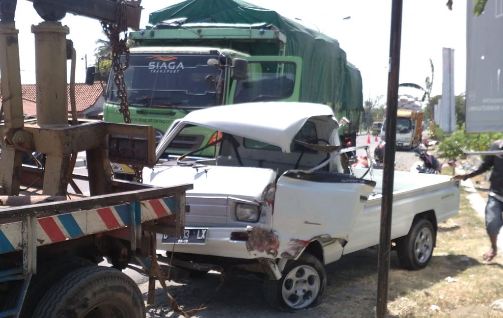 Kondisi mobil pikap ringsek bagian depan, namun sopir selamat tidak mengalami luka. Wiji mengatakan, sebelum menabrak melaju di lajur kanan di belakang sebuah mobil. ”Tiba-tiba mobil di depan saya itu berhenti mendadak, saya juga ikut ngerem. Tapi saya nggak nyandak, jadi banting kiri dan di situ pas ada truk berhenti,” tuturnya.