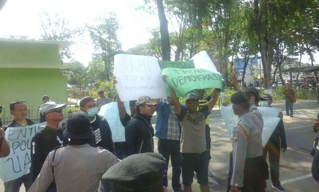 Namun, Ketua KPU sedang tidak ada ditempat sehingga tidak dapat menemui aksi massa tersebut. Lantaran tidak ada kata sepakat massa mulai bertindak anarkhis. Peserta aksi melempari benda benda keras ke arah aparat Dalmas yang menjaga kantor KPU.
