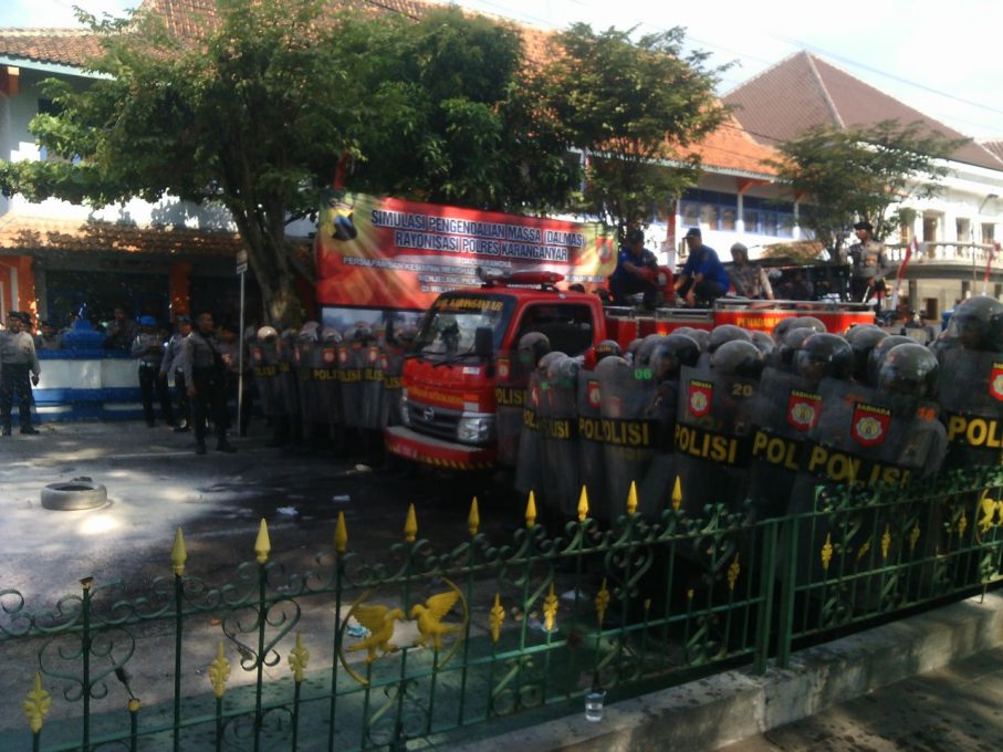 Pertama-tama pihak Polres melakukan negosiasi dengan koordinator lapangan yang melakukan aksi di depan kantor KPU. Massa meminta kepada aparat agar Ketua KPU karanganyar melakukan pemilihan ulang.