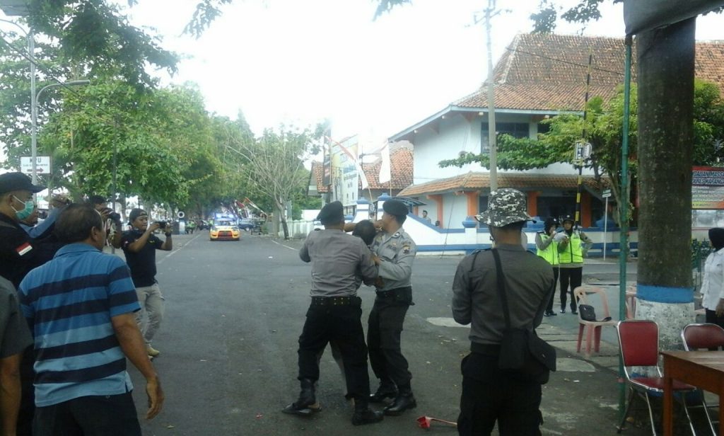 Pertama-tama pihak Polres melakukan negosiasi dengan koordinator lapangan yang melakukan aksi di depan kantor KPU. Massa meminta kepada aparat agar Ketua KPU karanganyar melakukan pemilihan ulang.