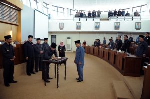 Ketua DPRD Boyolali S. Paryanto menandatangani persetujuan bersama raperda perubahan APBD 2017 dan 7 raperda Jumat 25 Agustus 2017. Gunawan